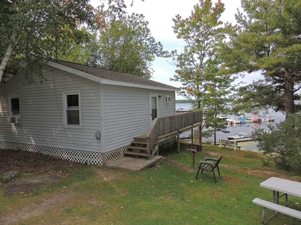 2 Bedrooms (2 Queen & 2 Twin Beds) Roomy family area. Cottage is more secluded in the woods. $950 – $1650/Week