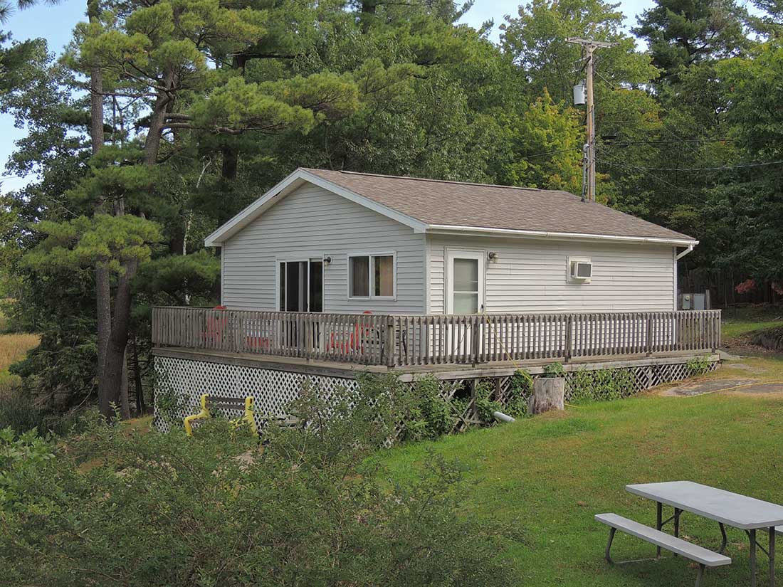 2 Bedrooms (2 Queen & 2 Twin Beds) Roomy family area. Cottage is more secluded in the woods.